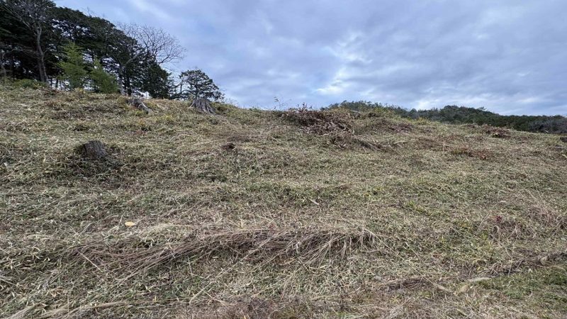 足場が不安定な斜面を覆うようにわさわさ雑草が生えている現場もあります。