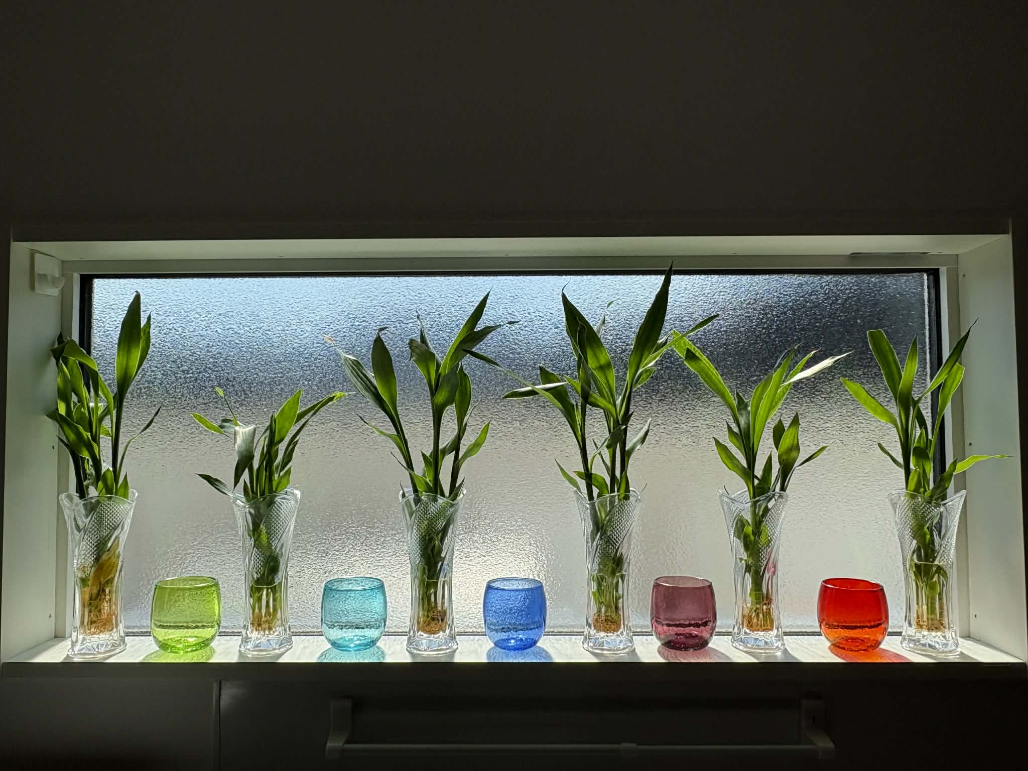キッチンの窓のちっこい万年竹、すくすく成長中。