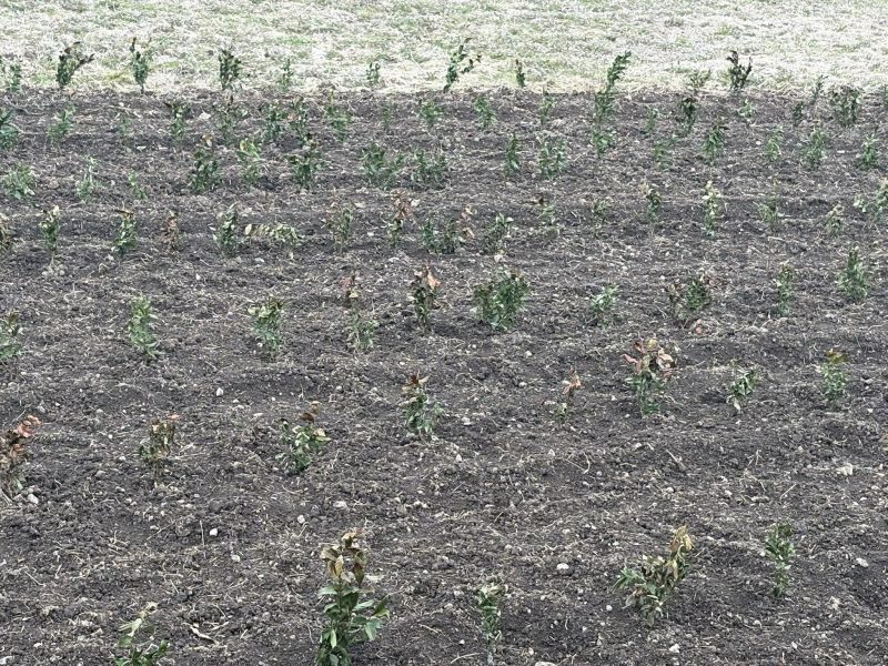 植えた途端に寒くなり、春の強い風もあり、まだちっこいので吹き飛ばされそうです。