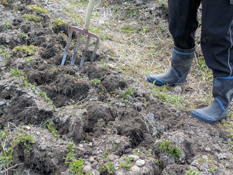 ひたすら掘って、土を持ち上げてひっくり返す。。。